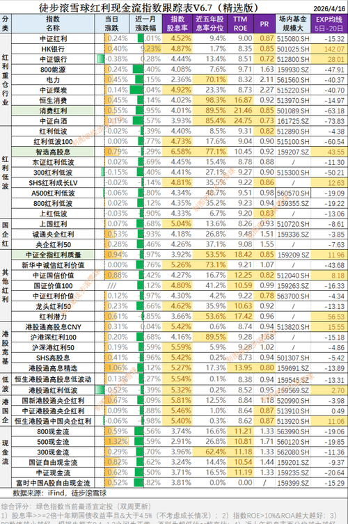 红利高股息现金流估值表4月16日:创业指数大涨,港股资金回暖