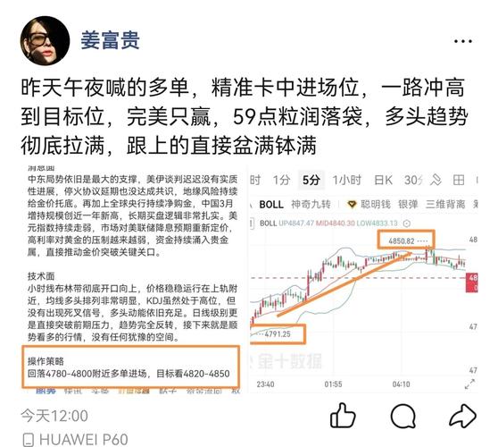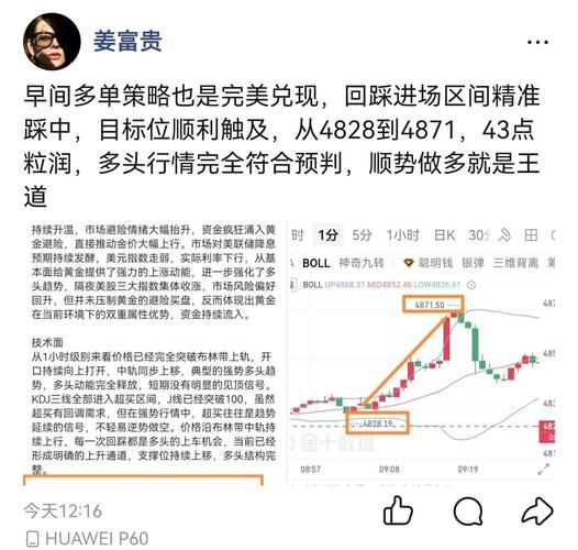 今日思路总结: 今天黄金的多头行情,富贵完全拿捏,从午夜提前布局的多单,精准踩中4790的起涨点,一路冲高到4850,59点利润直接落袋,早间回踩4828的二次上车机会,再次精准命中,4871的高点完美只赢,再拿43点,晚间震荡行情里,4790接多,4830止盈,40点小波段也稳稳拿下。 不管是大趋势还是小波段,不管是早磐还是午夜,每一次策略都精准兑现,每一个进场位都踩在起涨点,每一个目标位都顺利...