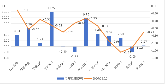 一、市场温度计 市场温度计介绍:由弘毅远方基金自研,用于判断股票市场情绪,区间为0-100;数据越高,市场温度越高;数据越低,市场温度越低。 风险提示:仅用于反映市场情绪,不作为买卖依据,仅供参考。 市场温度计(短期):33;市场温度计(中长期):48。 市场温度:进攻。 数据来源:wind弘毅远方基金整理;数据区间:20240902-20260312 二、主要指数与行业情况 数据来源:choic...