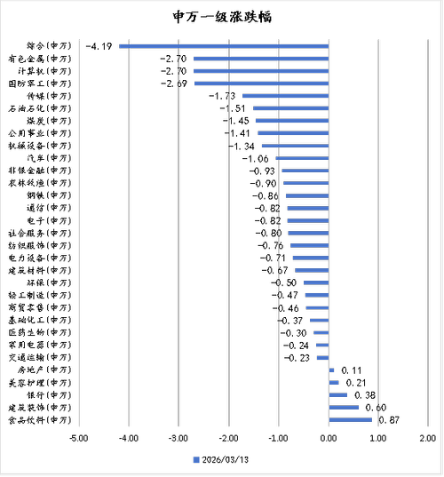 一、市场温度计 市场温度计介绍:由弘毅远方基金自研,用于判断股票市场情绪,区间为0-100;数据越高,市场温度越高;数据越低,市场温度越低。 风险提示:仅用于反映市场情绪,不作为买卖依据,仅供参考。 市场温度计(短期):20;市场温度计(中长期):43。 市场温度:进攻。 数据来源:wind弘毅远方基金整理;数据区间:20240902-20260313 二、主要指数与行业情况 数据来源:choic...