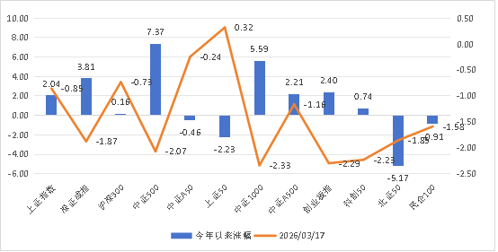一、市场温度计 市场温度计介绍:由弘毅远方基金自研,用于判断股票市场情绪,区间为0-100;数据越高,市场温度越高;数据越低,市场温度越低。 风险提示:仅用于反映市场情绪,不作为买卖依据,仅供参考。 市场温度计(短期):10;市场温度计(中长期):39。 市场温度:进攻。 数据来源:wind弘毅远方基金整理;数据区间:20240902-20260317 二、主要指数与行业情况 数据来源:choic...