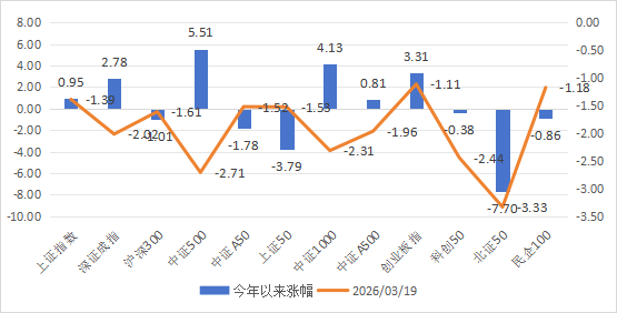 一、市场温度计 市场温度计介绍:由弘毅远方基金自研,用于判断股票市场情绪,区间为0-100;数据越高,市场温度越高;数据越低,市场温度越低。 风险提示:仅用于反映市场情绪,不作为买卖依据,仅供参考。 市场温度计(短期):7;市场温度计(中长期):38。 市场温度:进攻。 数据来源:wind弘毅远方基金整理;数据区间:20240902-20260319 二、主要指数与行业情况 数据来源:choice...