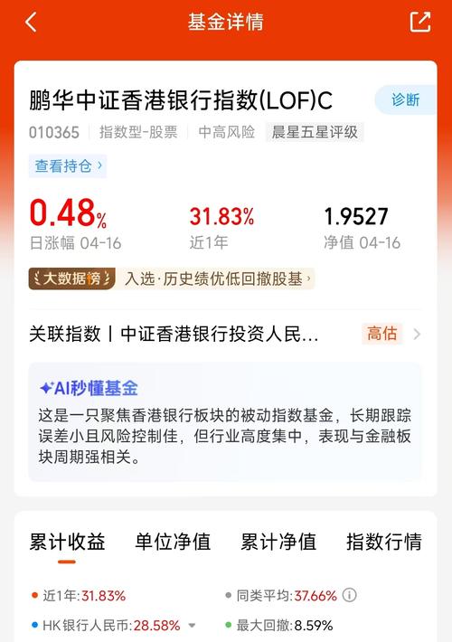我也将$鹏华香港银行指数(LOF)C$(010365)纳入了持仓。近期的盘面特点是不同板块之间快速切换,与其疲于地跟随,不如提前布局在一些价值相对低估的区域。香港银行板块同时具备了估值吸引力与股息回报的优势,是进行防御性配置的经典选择之一。该基金近期的表现,一定程度上反映了资金正在向这类价值板块进行再平衡。在举棋不定的时候,选择这种有长期逻辑支撑的底层资产,可能是一个明智的策略。建议你也将其列入考...