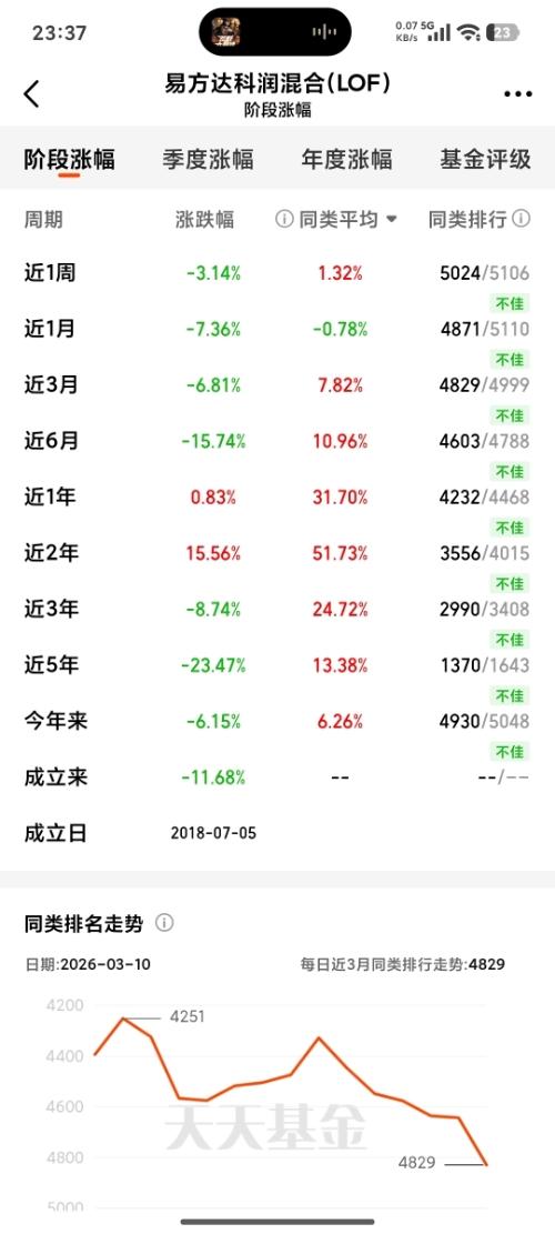 $易方达科润混合(LOF)[161131]$ 你们雇的经理操作真特么稳,干了4年就没当过倒数第二!