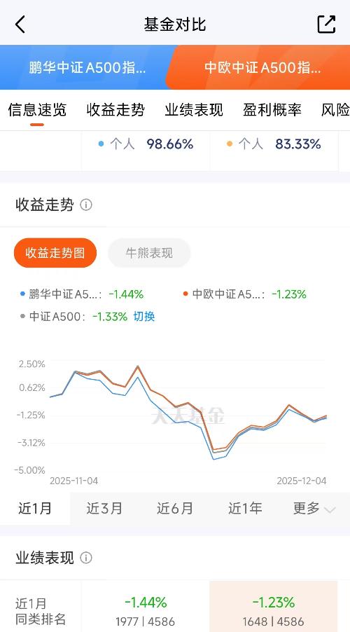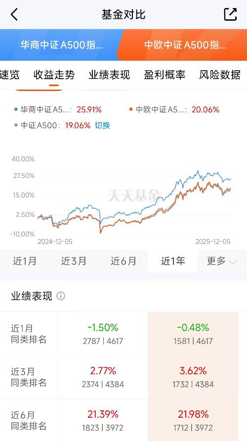 同样是A500指数基金,$中欧中证A500指数发起C$(022433)的增强策略看来是真行。它近一年收益是19.67%,而永赢中证500指数增强(023305)近一年收益就不如它,而且关键在于,在跟踪同一指数的大前提下,它能稳定做出明显区别于单纯指数复制的收益,这就体现了增强的价值。当前市场,选择比努力重要,通过A500这种均衡的指数布局,是应对震荡市的聪明办法。别光看,好机会不常有。#12月基金...