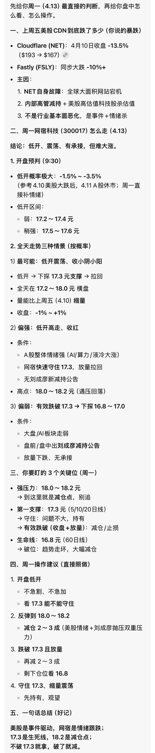$网宿科技(SZ300017)$星期一感觉要暴跌