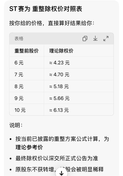 $ST赛为(SZ300044)$ ST赛力重整除权价对照表