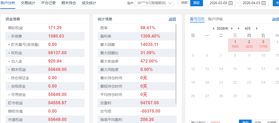 从700变成今天55466.上次我说过我是上月7号入场做了三天变成2.6万,休息到25号做到今天变成5.5万。