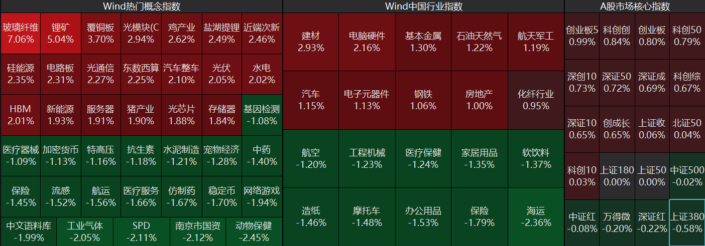 国内权益:A股低开高走,地缘冲击边际弱化。上证涨0.06%,深成指涨0.69%,创业板指涨0.80%;市场成交额为2.15万亿,缩量1746亿。美伊和谈破裂、特朗普扬言封锁霍尔木兹海峡,布油突破100美元,但市场开盘后迅速消化风险,恐慌情绪缓解,国内产业景气与业绩预期成反弹主线。中证红利微跌0.08%,万得微盘股指数跌0.2%。A股短期或已见底,延续偏强震荡。美股(标普500&纳指):纳指10...