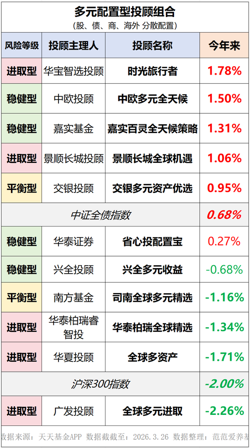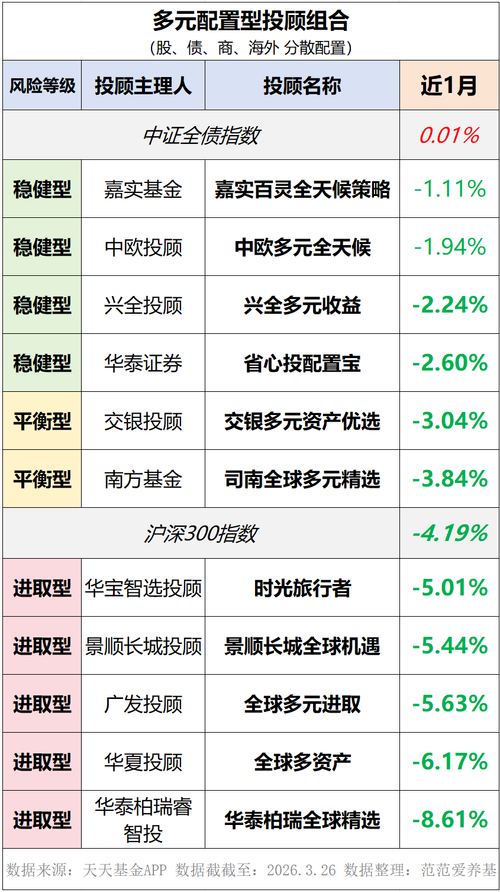 最近听到一个吐槽比较多:全天候组合成全天候下跌了!全球股市跌,黄金也大跌,甚至美债基金也在跌......说好的分散风险呢?说好的东边不亮西边亮呢?我盘点了一下我持续跟踪的11个多元配置型投顾组合,主打全球股债商分散配置,也就是我们常说的全天候型投顾组合。特别说明:大部分“多元配置型投顾组合”并没有强制规定股债配比。也就是说,理论上,投顾主理人可以根据市场行情,灵活调整股债配比,因此,上面11个组合...