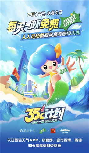 墨迹天气联手麦当劳再度开启“35度计划”,用清凉礼包给你降温