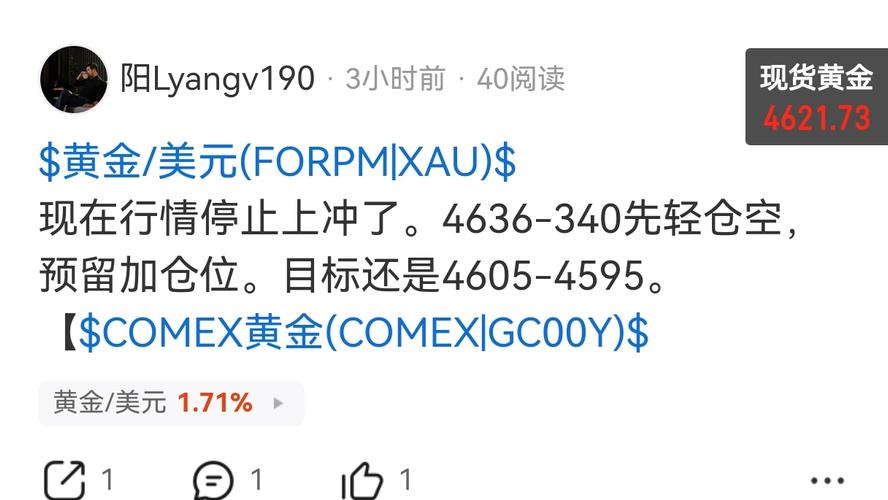 $黄金/美元(FORPM|XAU)$ 4610两次都没破4605有点不好下去。 稳健可以4620收10几美!要继续下看4605-4595就留宝本笋。 【$COMEX黄金(COMEX|GC00Y)$