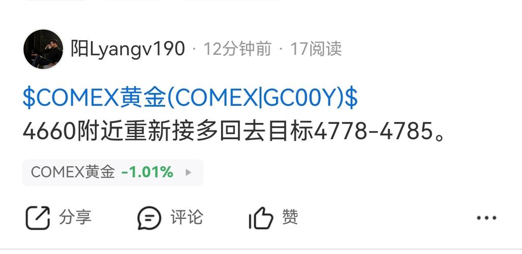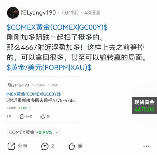 $COMEX黄金(COMEX|GC00Y)$ 刚刚加多阴跌一起扫了挺多的。 那么4667附近浮盈加多!这样上去之前笋掉的,可以拿回很多,甚至可以输转赢的局面。 $黄金/美元(FORPM|XAU)$