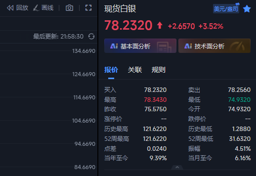 白银日线和周线看虽然震荡偏强运行,但是当前测试周线中轨和ma10附近压制,谨慎追多,可以考虑空单参与,风控78.8,目标看77-76.8附近,跌破看75.7附近。 如果后续突破企稳79的话,可能再度上探83-85附近,今晚78-79区域攻防很关键。仅供参考。