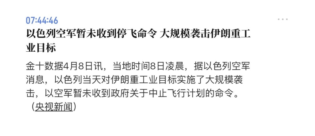 特∴我同意暂停对伊朗的轰炸和袭击行动,为期两周 刚刚耐美原油垂直跌落9.6%! 哈哈,看来不会打脸了。水平还过得去吗? //@无声滴感觉:原油终于跌下来了!又猜对封神了!有人说我:妥妥只看指标,不考虑综合因素的。其实不然,指标已经提前反应了现实,只是解读是否正确的问题。$NYMEX原油(NYMEX|CL00Y)$//@无声滴感觉:跳水!布伦特原油4小时顶部结构形成中。若破106.85,则再破98....