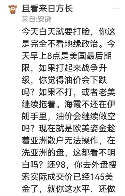$旗滨集团(SH601636)$$上证指数(SH000001)$$君实生物-U(SH688180)$ 如今股票论坛上,有一群炒作原油的人。 这帮人看地图,不看山川地貌,只找油田在哪;看新闻,不顾百姓苦难,只算油价涨跌。每次听说边境要起冲突,他们就拍手叫好:“行了行了!油价要破一百了!”偶尔看到和谈刚有眉目,他们就捶胸顿足:“完了完了!我的仓位完了!” 他们的心思是这样的:导弹划过的轨迹,就是技术分...