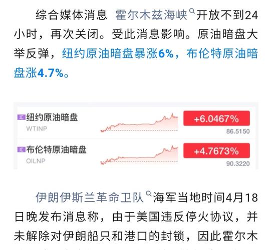 伊朗称霍尔木兹海峡于18日晚起关闭伊朗伊斯兰革命卫队海军公共关系部18日晚间发布消息称,此前一天,多艘船只在伊朗伊斯兰革命卫队海军的指挥和协调下通过了霍尔木兹海峡。然而,由于美国违反停火协议,并未解除对伊朗船只和港口的封锁,因此霍尔木兹海峡将于当晚起关闭,直至封锁解除。伊朗警告称,所有位于波斯湾和阿曼海的船只不得离开其停泊地,任何接近霍尔木兹海峡的行为都将被视为与敌方合作,违规船只将成为打击目标。...