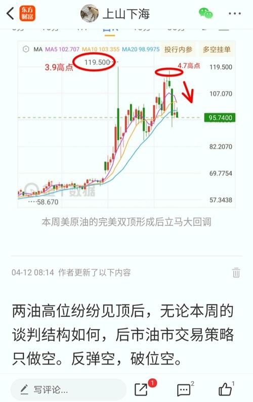$NYMEX原油(NYMEX|CL00Y)$周末各种小作文消息不用理会太多,油价走向就是各种事件叠加后的风向标。所以我们一定要理性,记住一点大跌后会有反弹但高点为比之前更低,这就是整体价格重心在下移,我们只是要注意进出区间。