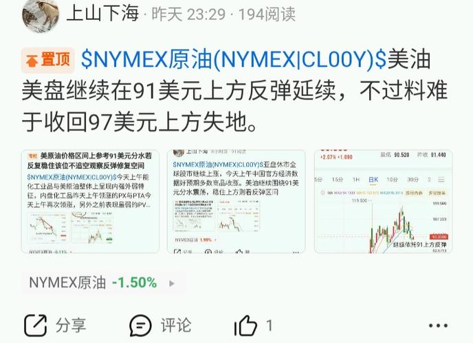 $NYMEX原油(NYMEX|CL00Y)$反弹后美油昨晚美盘也就是北京时间今天凌晨1:30最高只到94.8美元附近后再次回落,目前暂时还是高于91美元之上震荡。其实这种符合预期在谈判情绪下,没有新的刺激很难收回97美元之上失地,除非特朗普再次出来"拱火"挺油价。所以目前谨慎参与国内能化的震荡区间为主。