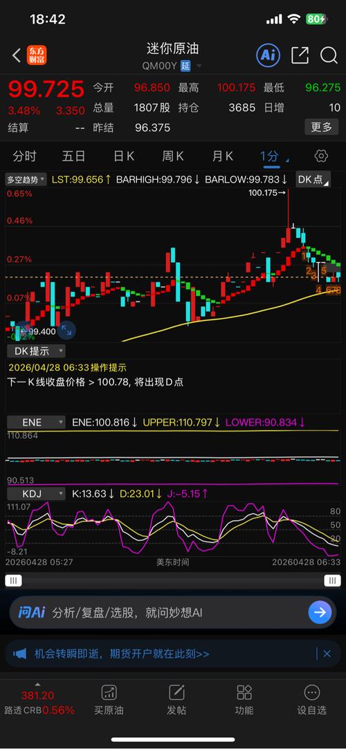 $迷你原油(NYMEX|QM00Y)$ 美国伊朗局势紧张。原油单边行情突破。一路飙红。原油期权。每天都是几倍几倍的翻。五一放假A股美股下跌,原油化工板块大涨