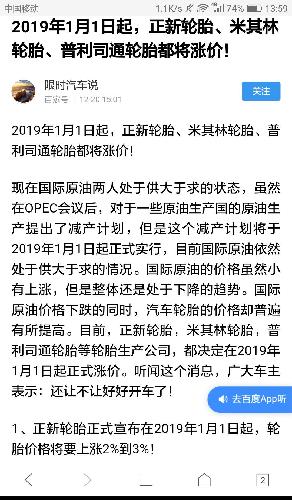 2019年1月1日起,正新轮胎、米其林轮胎、普利司通轮胎都将涨价! 现在国际原油