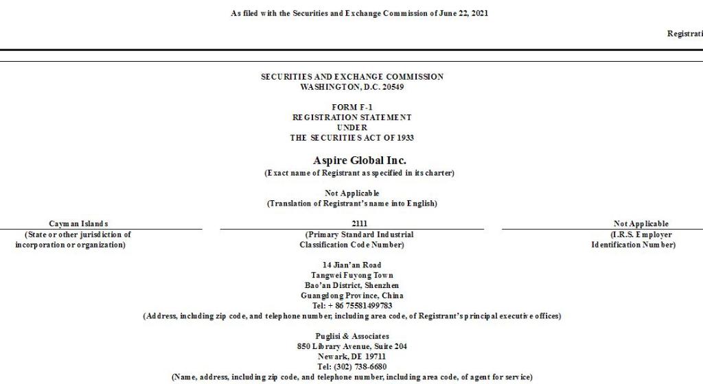 Aspire Global将赴美上市 筹资或达1.35亿美元
