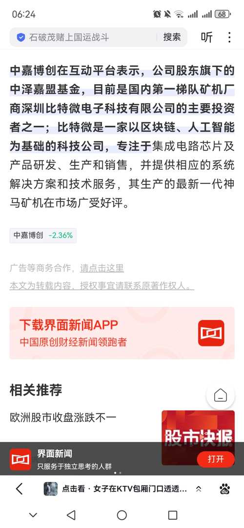 $比特矿业(NYSE|BTCM)$百度搜索比特微,居然自动跳出中嘉博创,深扒下,两个公司都有同一个股东,有关联交易不怕没合作