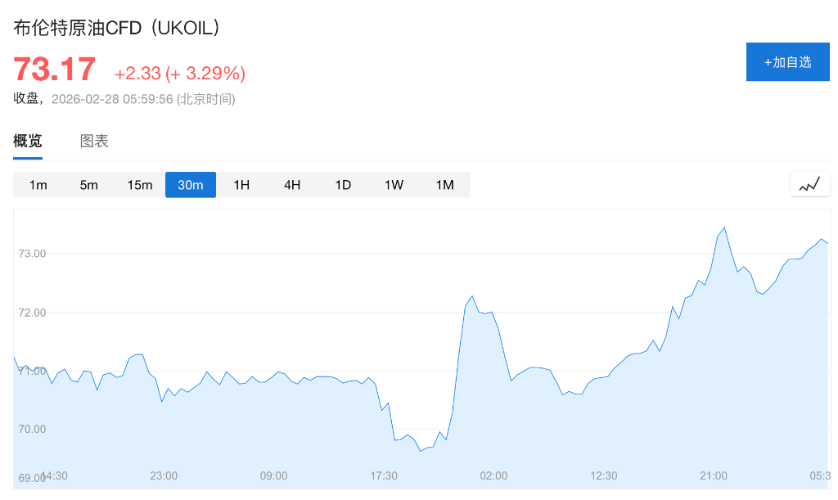 华尔街见闻 霍尔木兹海峡局势高度紧张,伊朗革命卫队已通过无线电向过往商船发出警告,表示“任何船只不要通过”。目前海峡仍处于开放状态,多家贸易商暂停运输,油轮纷纷掉头。保险市场急速反应,相关保费最高上涨50%。分析预计,若冲突持续引发供应中断,布油或破百,全球通胀可能因此抬升0.7个百分点。尽管局部干扰已成现实,全面封锁概率仍低。 美伊局势骤然紧张,市场担忧霍尔木兹海峡的石油运输通道受阻,油价上涨预...