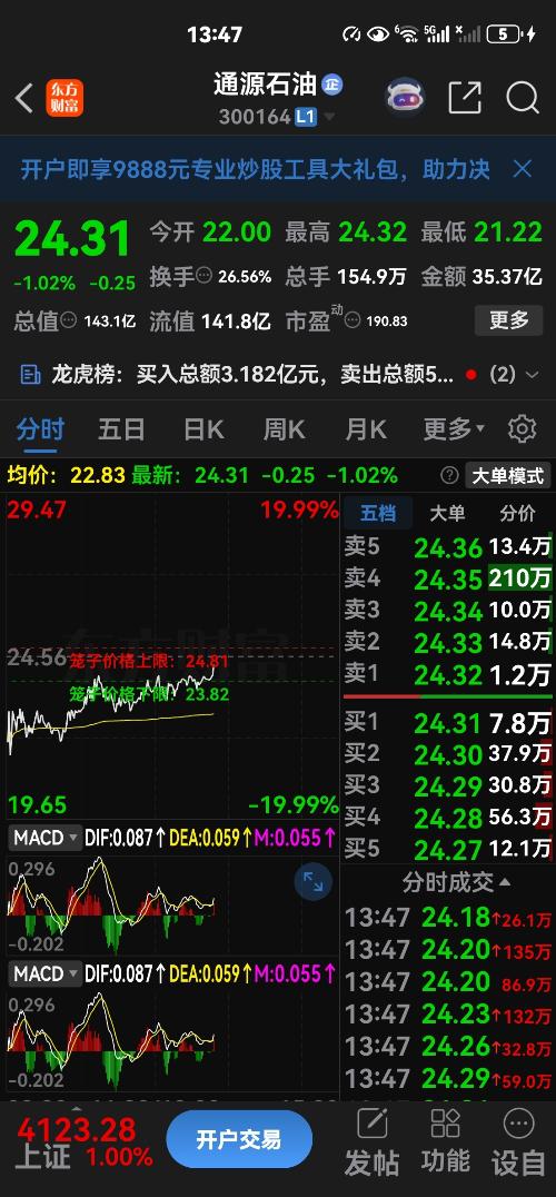 $天然气ETF-FirstTrust(AMEX|FCG)$ $通源石油(SZ300164)$境界高【速度买入贝肯能源】 $贝肯能源(SZ002828)$【石油期货新高】通源石油跌15%要红了,贝肯能源接下来直线拉,盘子小换手30%成为新龙头