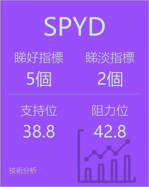 美股个股指标分析-$SPDRPortfolioS&P500HighDiv(AMEXSPYD)$看好指标5个,看淡指标2个。支持位38.8,阻力42.8,仅供参考。