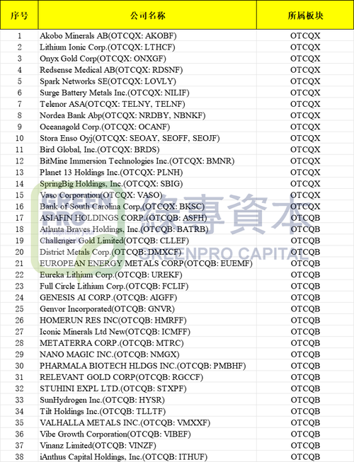9月,美国OTC市场迎来38家新公司,环比上月增加17家,增幅81%;从美国OTC市场转板进入主板市场的公司有2家,比上月增加了1家。新挂牌的公司来自美国、德国、加拿大、芬兰、澳大利亚、瑞典、挪威等10个国家和地区,加拿大和美国公司数量最多,分别占比47%、26%,挪威和芬兰各2家,其他国家各1家。值得一提的是,9月转板的2家公司市值都超过了2亿美元,截至当地时间10月23日收盘,最高的一...