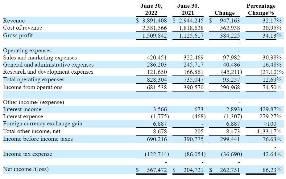 来源:招股书来源|LiveReport大数据招股书|点击文末“阅读原文”宝露泰奇于2023年3月10日向美国证监会(SEC)递交招股书,拟在纳斯达克上市,股票代码为:BBCH,公司是婴儿护肤品和洗浴用品供应商,2022年前6个月收入为389.14万美元,相应的净利润为56.75万美元。中介团队:承销商:UnivestSecurities,LLC审计师:TPSThayer,LLC公...