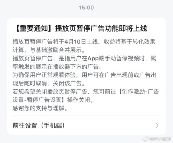 公司动态近日据新浪科技报道,哔哩哔哩(B站)将于4月10日上线播放页暂停广告的功能。消息一出,迅速引发热议,相关话题登顶微博热搜。 播放页暂停广告,是指用户在App端手动暂停视频时,概率触发的展示在播放器下方的广告。官方表示,为确保用户观看体验,广告可随时取消或关闭。UP主也可在【创作激励-广告设置-暂停广告设置】中自行关闭该广告。值得注意的是,该广告并非直接覆盖视频,而是在视频下方显示,并明确标...