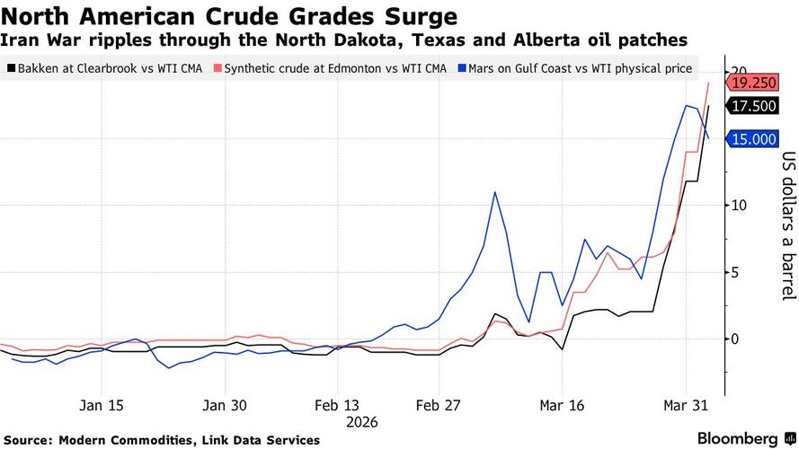 从得克萨斯州和北达科他州到艾伯塔省的原油品级价格正在飙升,原因是炼油商在霍尔木兹海峡运输受阻数周后,与亚洲和欧洲的竞争对手争夺原油。随着对日益减少的可获取原油的需求升级,全球原油市场裂痕的“蛛网式扩散”正在蔓延至落基山脉和美国大平原。从得克萨斯州和北达科他州到艾伯塔省的原油品级价格正在飙升,原因是炼油商在霍尔木兹海峡运输受阻数周后,与亚洲和欧洲的竞争对手争夺原油。 根据ModernCommodit...