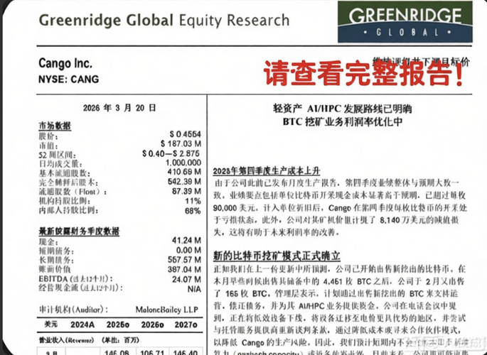 Greenridge Global 3月20日发布了关于 CANG 的最新研究报告,重点包括: