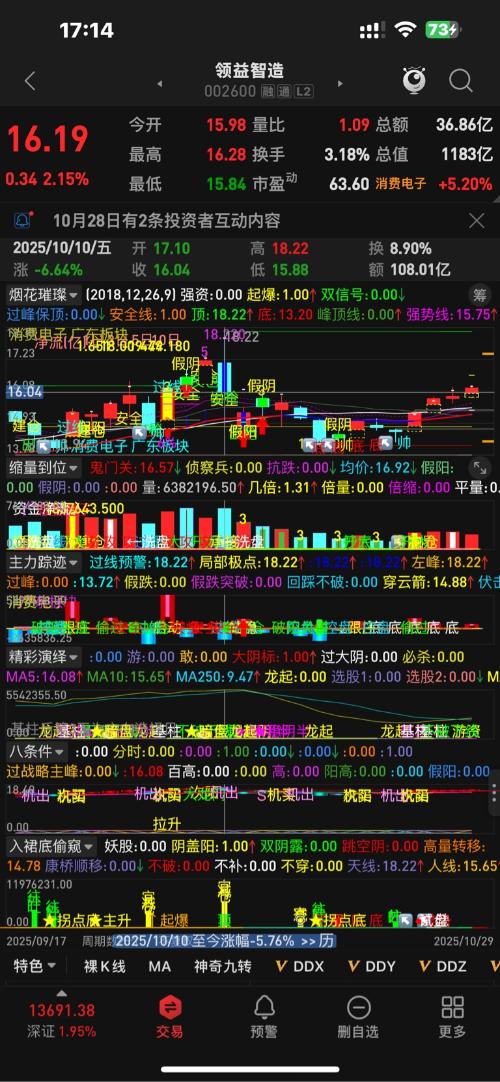 领益、四天有三个跳空,今天站上高量底,一定会有惊喜的