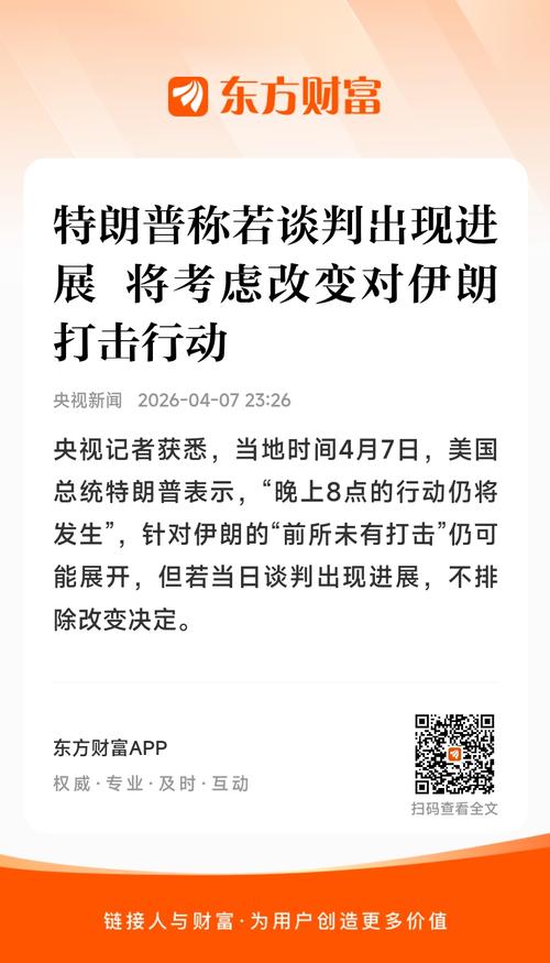 据央视,美国总统特朗普宣布,若在北京时间8日8时之前不能达成协议,将对伊朗关键基础设施进行大规模空袭。原定于北京时间7日20时举行的五角大楼新闻发布会突然取消,美以伊冲突正逼近最危险时刻。美国阿克希奥斯新闻网7日援引消息人士的话报道称,美国和以色列对伊朗能源设施进行大规模轰炸的计划已准备就绪,只待特朗普下令。 #收盘点评##炒股日记#...