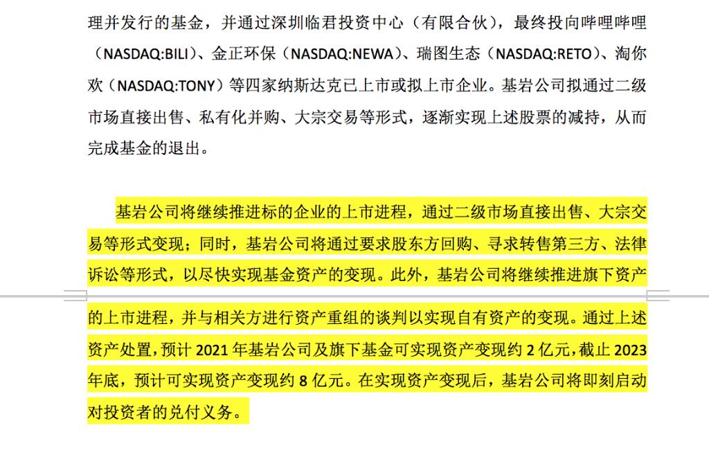 基岩资本披露基金情况说明:预计3年内变现8亿元,赫旭火速退群