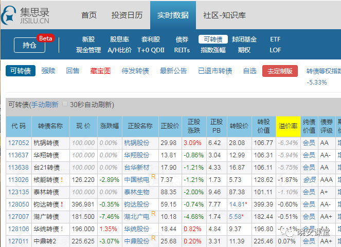 投资可转债,不能盲目投资,需要学习相关知识,做一个内行人,才能赚到可转债相关的利润。仅仅有这些还不够,我们还需要一些专业的数据和资讯,从哪里找,我都帮你找好了,一起来看看吧。第一个网站:集思录它是可转债数据最权威、最全面的专业投资网站。内容包括了:1、待发可转债数据2、已上市可转债数据3、回售数据4、强赎数据第二个网站:雪球网用于查找正股、可转债信息、公告和相关讨论的财经类网站第三个网站:深交所深...