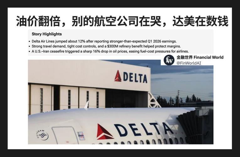 一家航空公司怎么在油价最贵的时候赚到钱?伊朗战争打响后,航空公司是最惨的一批受害者。航空公司股票指数单周暴跌12%,联合航空和美国航空被迫立刻下修业绩指引。达美航空昨天交出了一份让人意外的财报:Q1营收142亿美元超预期,股价涨12%,成为这波能源危机里的相对赢家。为什么达美不怕油价涨?因为它自己在卖油 2012年,达美收购了宾夕法尼亚州的Monroe炼油厂,当时几乎所有分析师都觉得这是一个航空公...