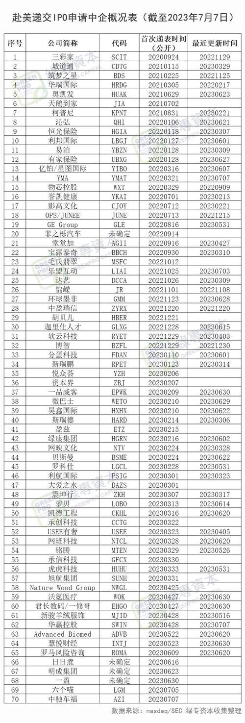 2023年上半年赴美上市中企盘点,及递交IPO申请概况表(截至2023年7月7日