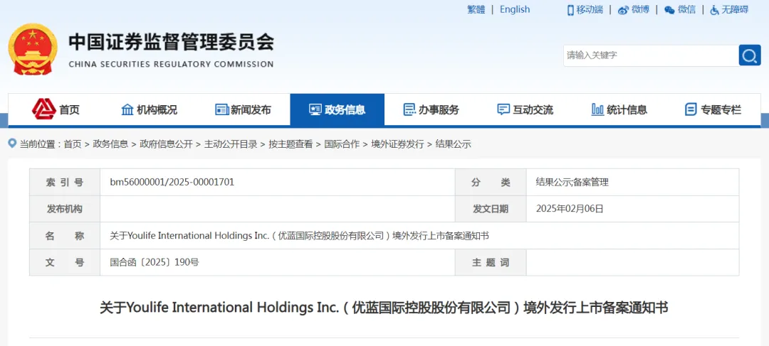 中国证监会网站发布关于YoulifeInternationalHoldingsInc.(优蓝国际控股股份有限公司)境外发行上市备案通知书。公司通过与境外特殊目的并购公司DistokenAcquisitionCorporation合并实现在美国纳斯达克证券交易所上市,YoulifeGroupInc.同步发行不超过15,667,670股普通股。优蓝国际完成境外发行上市后15个工作日内,应...