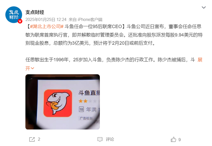 资讯 斗鱼营收持续下滑、用户流失,给创始人陈少杰分红影响现金流