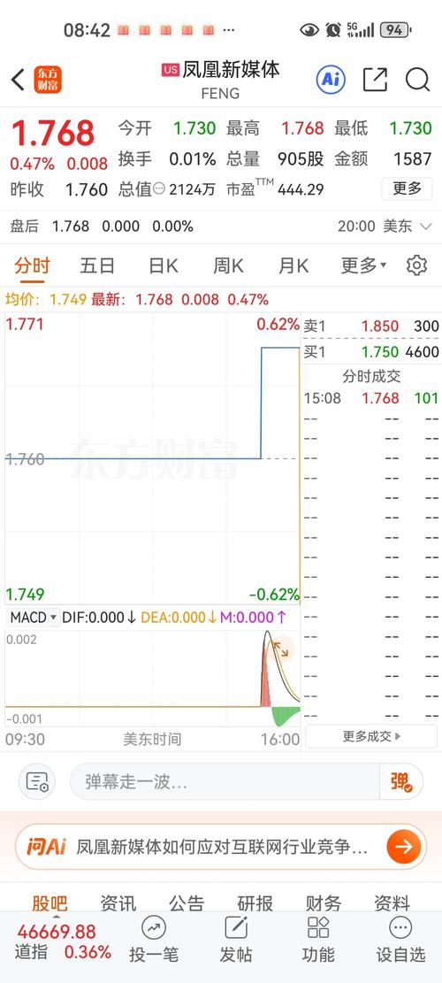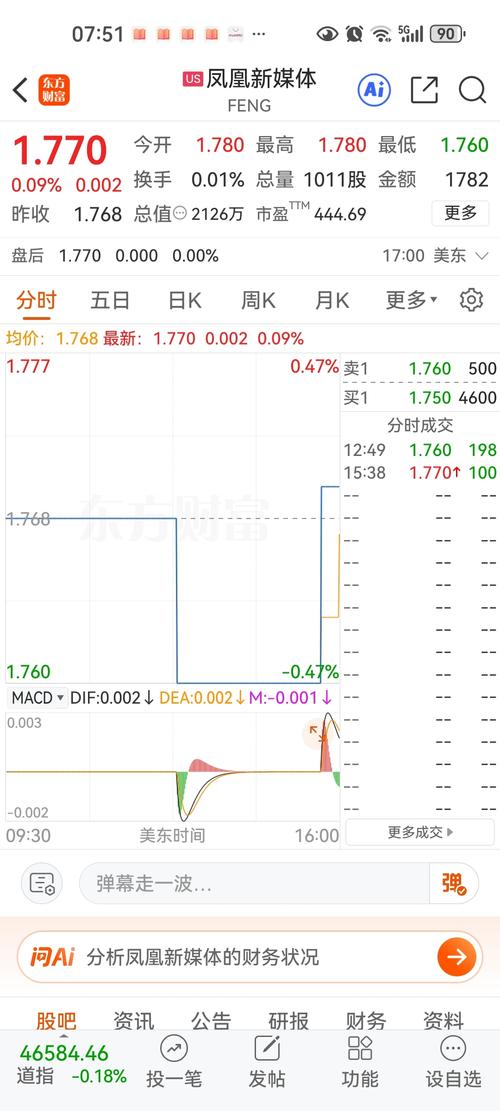 $凤凰新媒体(NYSE|FENG)$4月2日,分时成交100股,总量1101股,金额1952元。够拉几