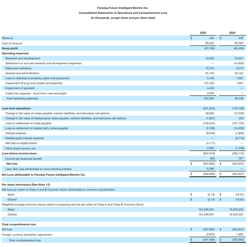 FF公布2025四季度及全年财务业绩:净资产转正,机器人超额完成首个交付月目标且实现单品正毛利