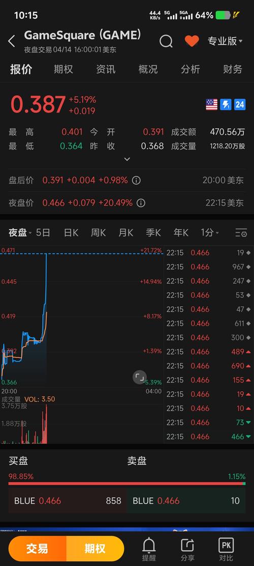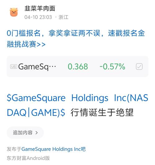 $GameSquareHoldingsInc(NASDAQ|GAME)$4.10日北京时间23:03的股价是3毛3,当时羊老师大胆买入,现在已经四毛了,吃肉吃肉