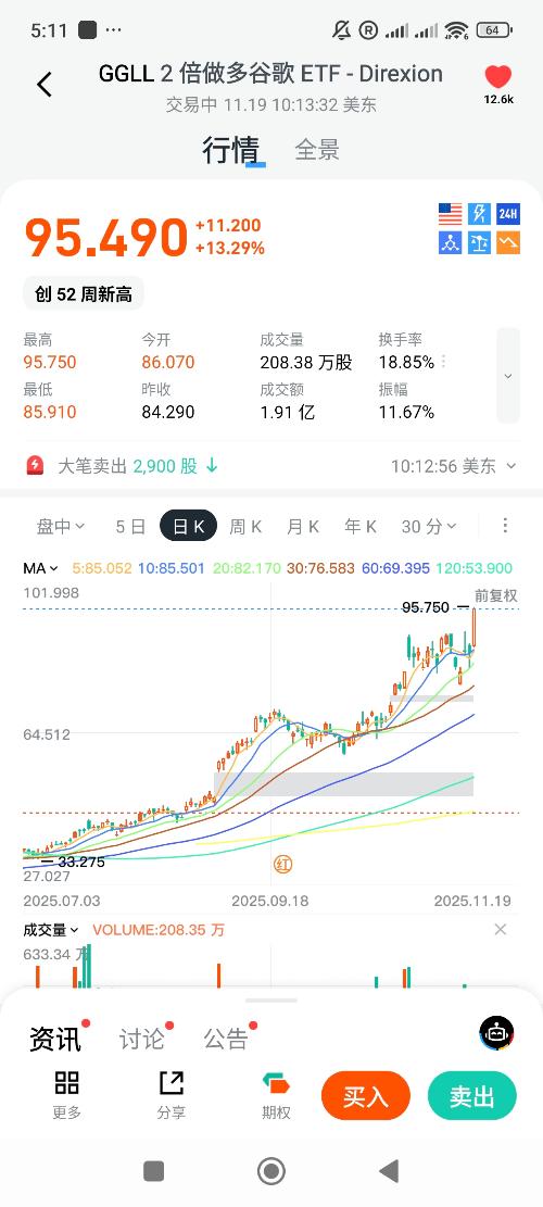 $DirexionDailyGOOGLBull2XSh(NASDAQ|GGLL)$谷歌两倍目前应该是比较好的入场时机。