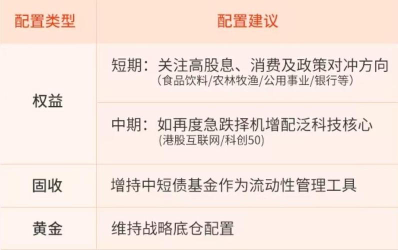 【核心观点】 外部扰动未消,政策对冲预期或强化内需韧性,科技自主与超跌修复主导中期逻辑。 华普集团旗下普益基金分析师建议,短期聚焦政策对冲逻辑,围绕内需方向进行再平衡,聚焦必选消费(如食品饮料/农林牧渔)及红利资产(如银行/公用事业);中期关注泛科技核心(港股互联网/科创50)的修复弹性。防御资产层面上,中短债基金为流动性管理核心;全球贸易摩擦升级或仅是未来不确定性的冰山一角,黄金仍可作为避险底仓...