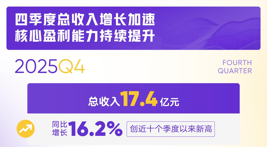 $虎牙(NYSE|HUYA)$3月17日,虎牙公司公布了2025年第四季度及全年财报。财报显示,2025年第四季度,虎牙总收入为17.4亿元,创近10个季度新高,同比增速提升至16.2%。其中,游戏相关服务、广告与其他收入同比增长59.4%至5.9亿元;直播收入达11.5亿元,保持稳健。用户数据方面,该季度,虎牙总MAU整体稳定,达1.6亿。全年来看,虎牙公司总收入同比增长7%至65.0亿元;非美...