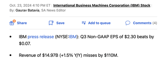 IBM在发布2024年第三季度财报时,股价表现强劲。这家科技公司的交易表现得像是一个主要的人工智能软件玩家,然而IBM拥有庞大的传统业务,主要集中在咨询上,这些业务不太可能从人工智能的繁荣中获得太大的好处。有外国分析师认为,在又一个非常疲软的季度之后,IBM或许并不值得看好。作者:StoneFoxCapital再次大幅未达预期IBM一直承诺转向一个新的增长领域,但从未实现过整体强劲的销售增长。...